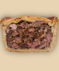 A truly distinctive pie celebrating the finest local ingredients. Succulent Walsingham Estate venison combines with premium Norfolk pork shoulder and leg, complemented by our in-house cured gammon. The magic lies in our signature mustard prunes, delivering bold heat, spice and luxurious depth, alongside locally crafted dark caramelised onion chutney and the natural sweetness of dates. Each bite reveals layers of carefully balanced flavours. Ideal for picnics, sharing lunches, festive gatherings or whenever you fancy something special.